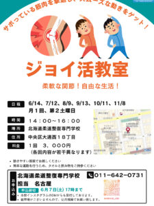 ジョイスタ境です。 お久しぶりの投稿になります。 昨年、一部の方にのみ案内をして、 北海道柔道整復専門学校の柔道場で密かに開催して大好評だった運動教室。 どんな、運動教室かというと、 身体を動かしていく毎に […]
