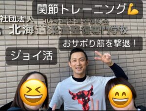 全6回ジョイ活!おサボり筋を撃退しよう! 9月から始まった、関節トレーニング教室最後の6回目。 北海道柔道整復専門学校の先生方、3か月に渡ってご協力頂き、ありがとうございましたい 記念に、学校玄関前でN先生とF先生と一緒 […]
